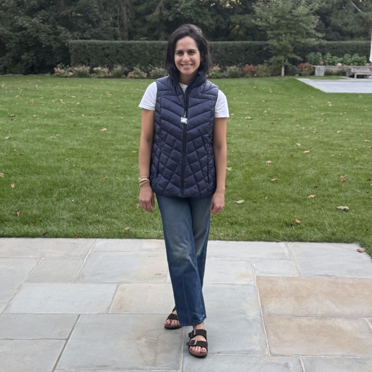 Dressing for transitional weather can be tough, but this water-resistant puffer vest is the perfect sleeveless option for chilly mornings and warmer afternoons. Takhtehchian loves the slightly cinched waist for a flattering silhouette, and it even features zipper pockets to keep your phone and wallet secure.