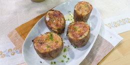 Technique tips: Smash the potatoes while they are still warm and steaming; as they cool, they become harder to shape. Make sure you overlap the edges of the smashed potatoes slightly. You need to create a watertight seal so the egg mixture stays contained within the potato shell rather than seeping underneath it.