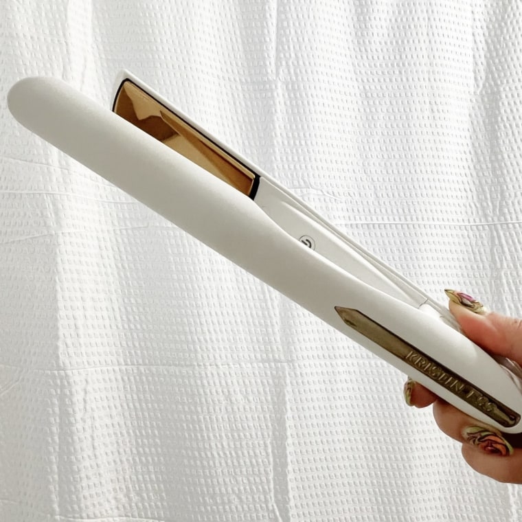 The Kristin Ess hair straightener was my top choice for several reasons. Its 1.25-inch plates make it easy to straighten, curl or create waves, offering versatility in styling. The titanium ion gold plates heat up quickly and reach up to 440 degrees Fahrenheit, while a small digital display lets you monitor temperature settings with ease.