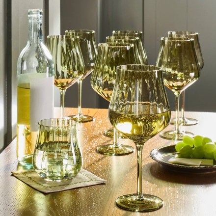 More ribbed glassware, but this time in a warm green hue! You can shop them as a set of four, eight or purchase them individually. There’s a stemless option, too!