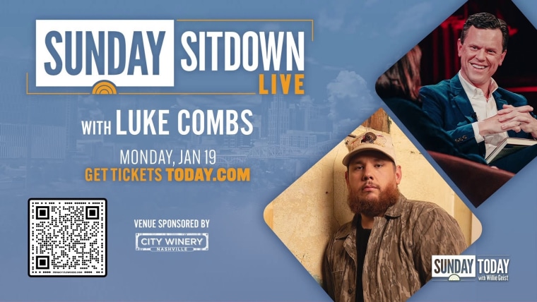 Sunday TODAY’s Willie Geist announces the next Sunday Sitdown Live event will take place in Nashville, Tennessee, on January 19th with Luke Combs. Tickets are on sale now. (Venue Sponsored by City Winery)Dec. 7, 2025